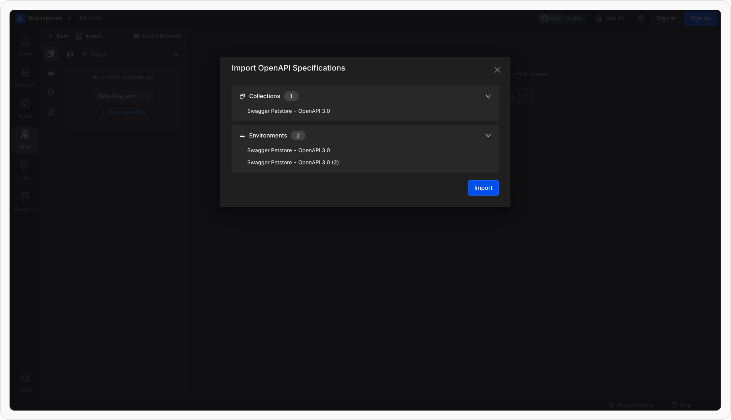 The importer supports both YAML and JSON OpenAPI files. When you upload a spec, Requestly automatically reads the file and creates API collections and requests based on your defined endpoints.How It Import