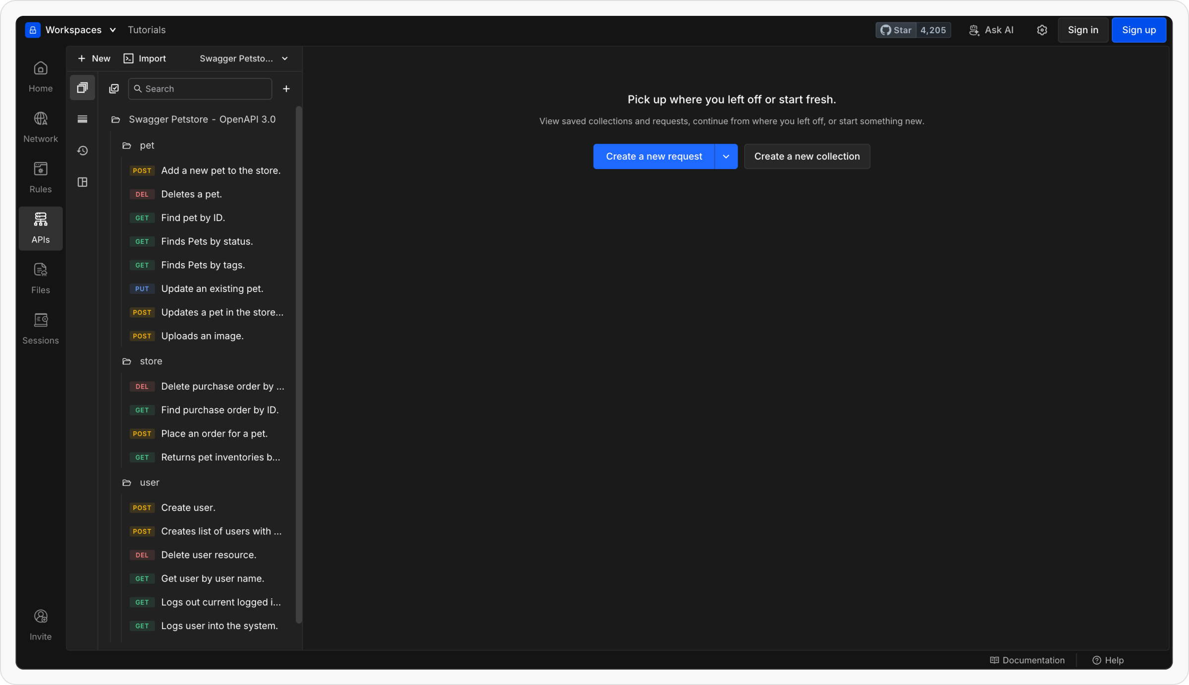 - Requests are grouped under collections named after your API or service.