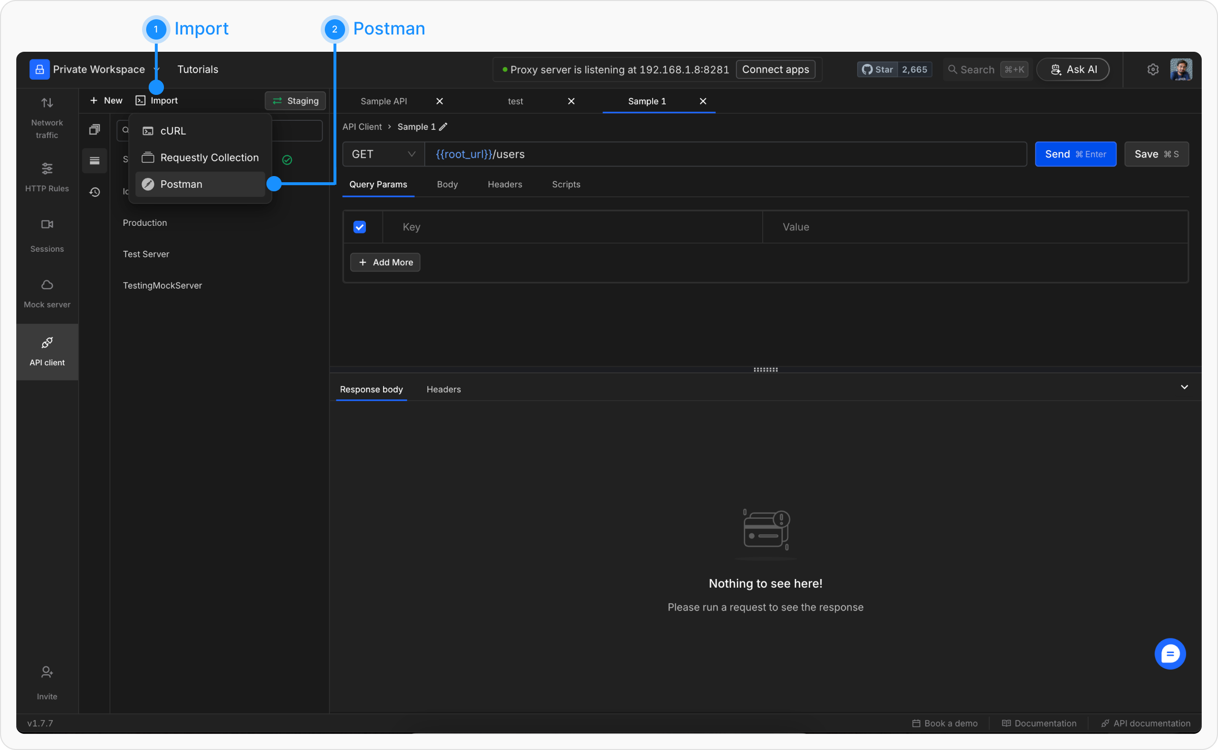 Postman is a popular API development tool widely used for testing and managing APIs. Requestly can import collections and environment files exported from Postman.