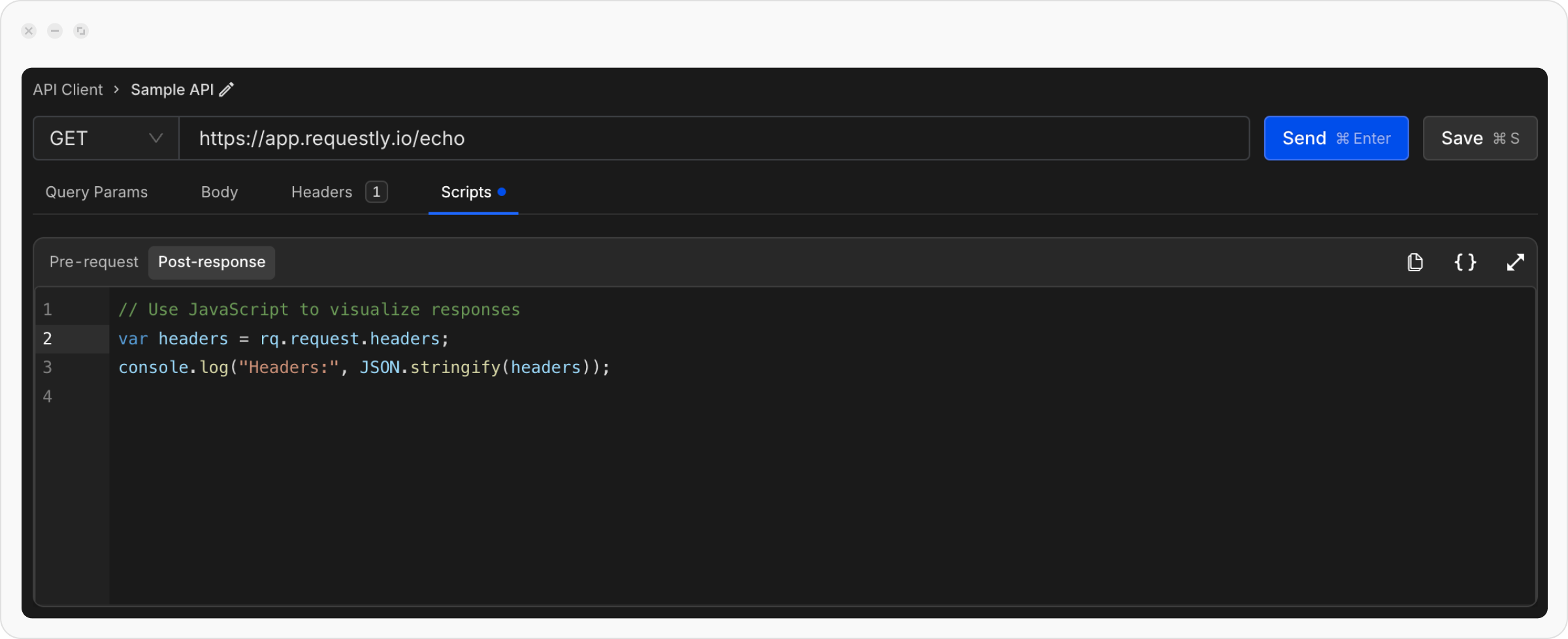 Post-Response Scripts run after the API response is received. They allow you to process response data, validate outputs, or log details for debugging. Post Scripts are useful for transforming the response body, validating response codes, or storing results for further use.