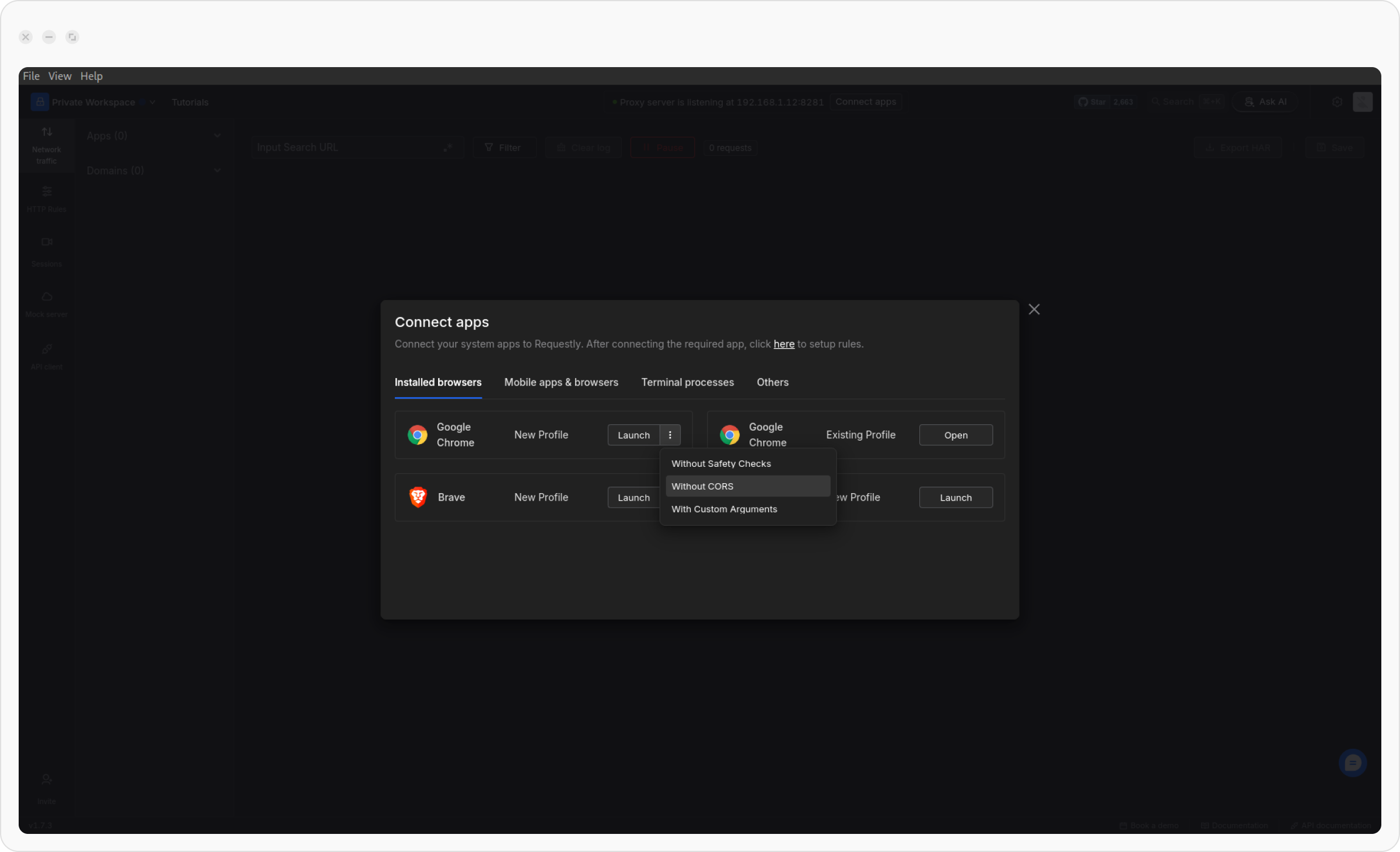 Launch a Browser with Requestly Proxy