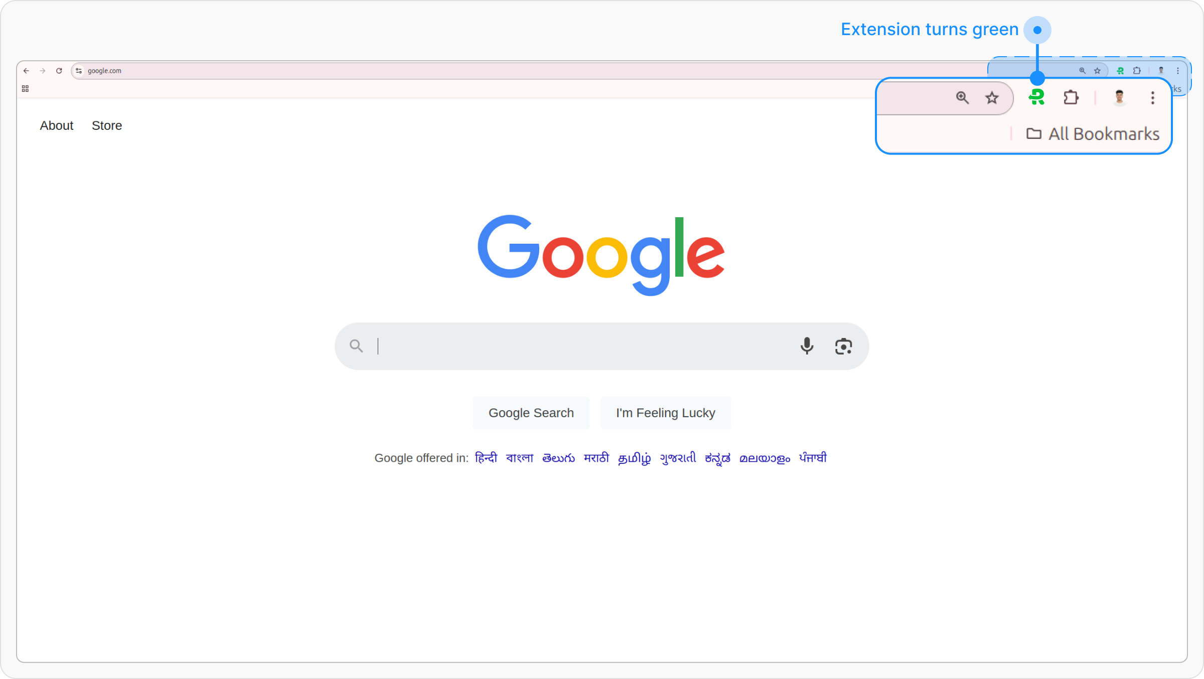 2. Requestly Extensionβs icon turns green in the extension toolbar.