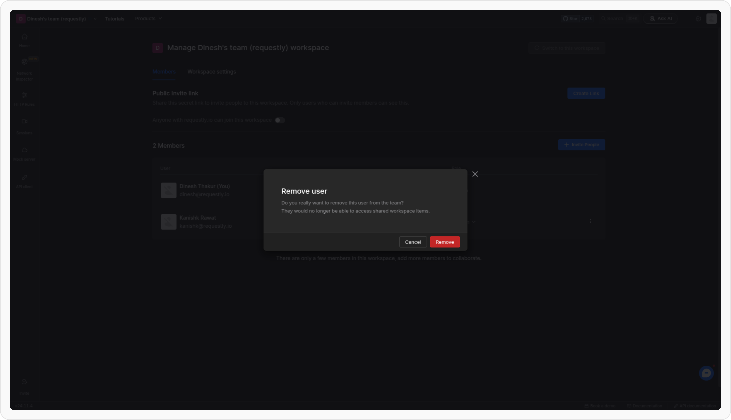Navigate to the Requestly dashboard and switch to the workspace where you want to add members.