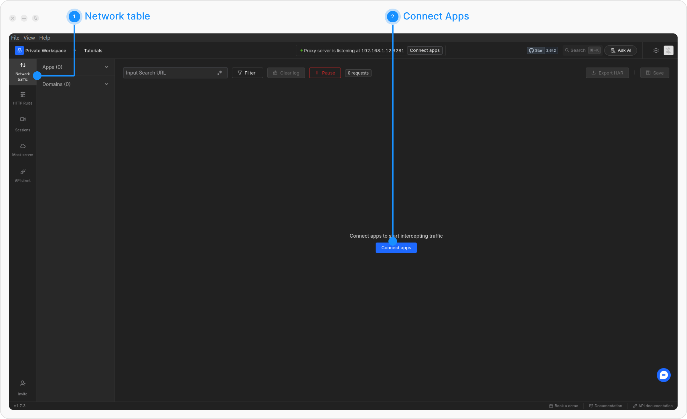 Open the Requestly Desktop App and go to the Network Table to begin monitoring traffic.Step 2: Connect an App: